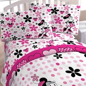 This bed set includes a pink comforter with different minnie mouse expressions, a sham cover with a polka dot bow and a white decorative pillow. Do you suppose minnie mouse twin comforter set looks great? Decorate with a chic black and pink minnie mouse comforter set or stick to minnie's signature colors of black and red. White filler+duvet cover+bed sheet+pillow case. Your little one will love climbing into bed with minnie and her friends.